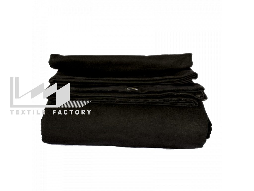 Hotový - ušitý závěs z materiálu MOLTON ČERNÝ, rozměr: šíře 250 cm x výška 130 cm, horní strana OKA po 25cm, dole olovo 200g.